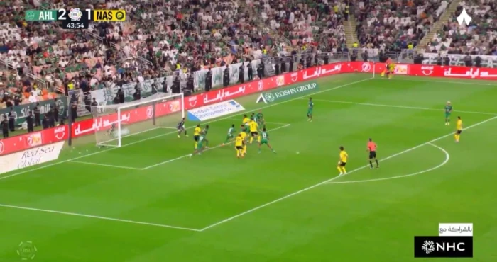 وقد استهلت المباراة بضغط هجومي مبكر من جانب أصحاب الأرض، حيث نجح المهاجم توني في منح الأفضلية للأهلي بتسجيله هدفين متتاليين، جاء الأول مع الدقائق الأولى وتحديدًا في الدقيقة السابعة، بينما عزز النتيجة بهدف آخر عند الدقيقة العشرين. في المقابل، أظهر النصر ردة فعل قوية للعودة إلى أجواء المنافسة، حيث تمكن اللاعب عبد الإله العمري من تقليص الفارق بتسجيله الهدف الأول لفريقه في الدقيقة الثانية والثلاثين، قبل أن يعود اللاعب ذاته ليدرك التعادل بإحرازه الهدف الثاني عند الدقيقة الرابعة والأربعين، ليعيد المباراة إلى نقطة البداية قبل نهاية الشوط الأول.