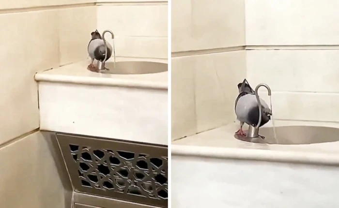 حمامة ذكية بمكة تستخدم جسدها لتشغيل مستشعر برادة المياه وتروي عطشها
